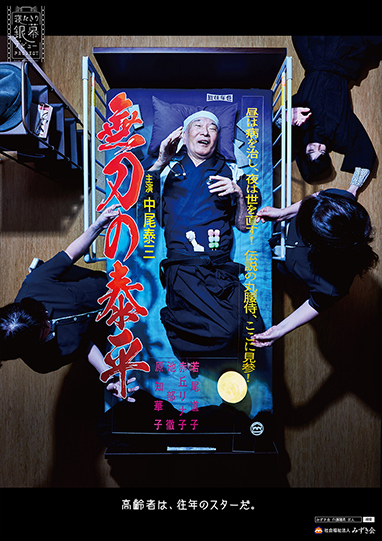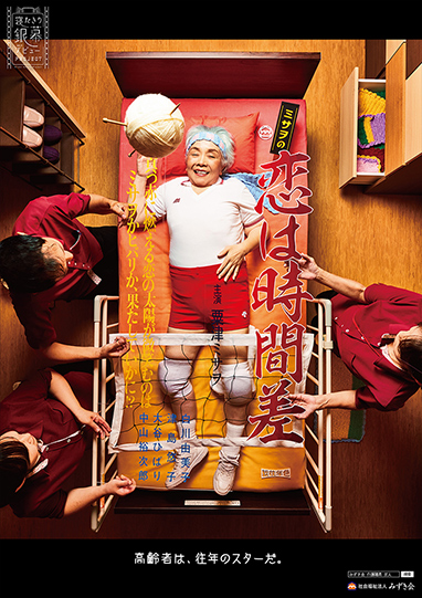 そこで、私たち「社会福祉法人みずき会」は、本当はもっとポジティブな介護職のイメージを伝えるべく、新たなプロジェクトを始動しました。「寝たきり」や「要介護」の状態にある老人ホームのご入居者様たちを主役に据え、その人生にスポットライトを当てたオリジナル映画のポスターを介護職員も一丸となって製作。往年の映画スターたちのように銀幕デビューを華やかに飾っていただきます。